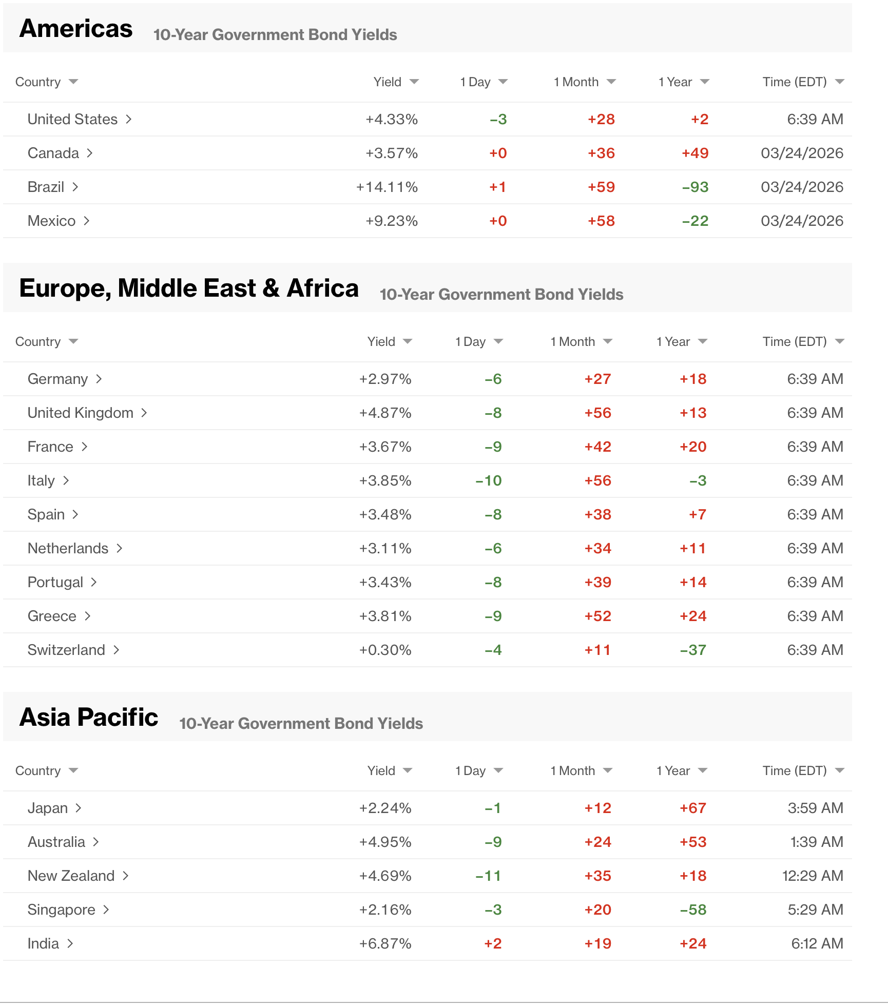 And yields falling down everywhere