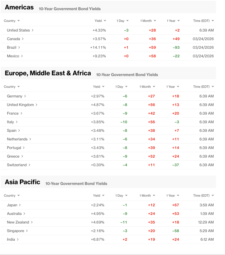 Will there be peace talks soon? President Trump claims things are happening in that direction. Comments from some in Iran say that is not the case. Clearly, both sides are incented to make those claims regardless of the reality. At the same time, US Marines and the 82nd Airborne division are on their way to the Gulf. It is easy to conclude that this is the prelude to a US intensification and effort at physical control of the Strait of Hormuz. Word is that the Saudis and Emiratis are also pleading with President Trump to finish the job and remove the Iranian theocracy to enable a more peaceful Middle East in the long run. But as always, sitting here in the US, and frankly if you are sitting in Europe or China or Japan or Australia, or pretty much anywhere but the Middle East or the White House, we don’t really know the facts on the ground, and we certainly don’t know the next steps. We are just guessing.