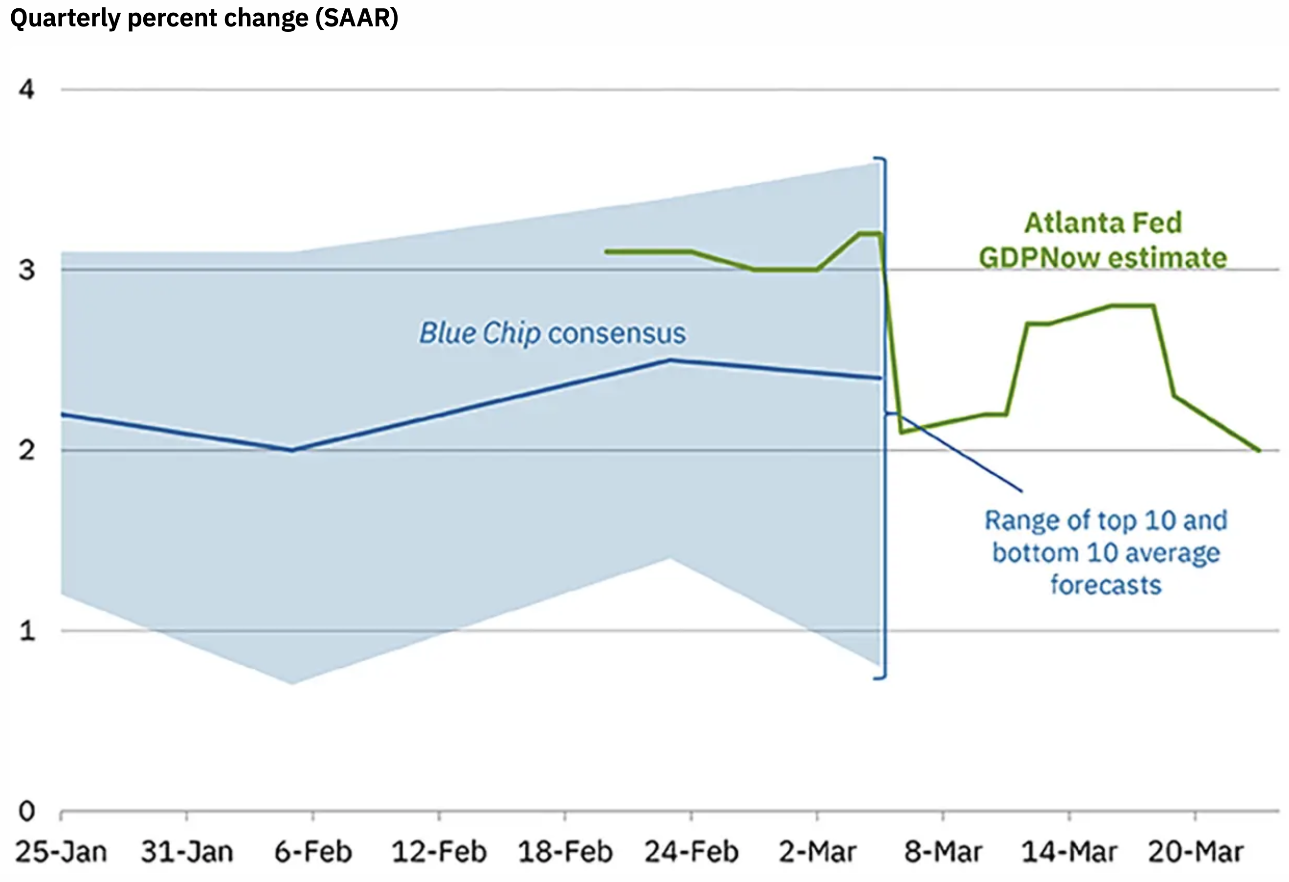 On the growth side, the Atlanta Fed’s GDPNow is running at 2.0% for Q1, well below its first readings from before the Iran activity, although still in decent shape. The next update comes tomorrow, so will be interesting to see. And, of course, the payroll report on Friday will be critical for that reading. It is, though, still well above the Blue Chip Consensus readings.