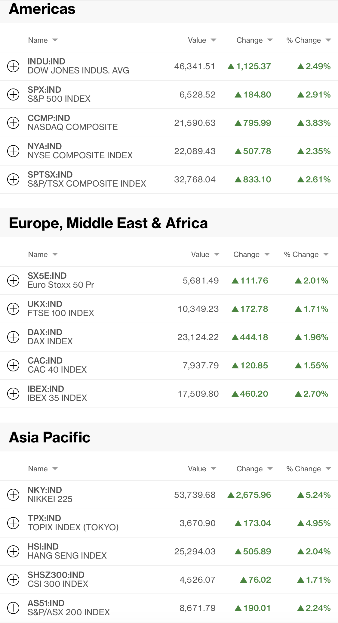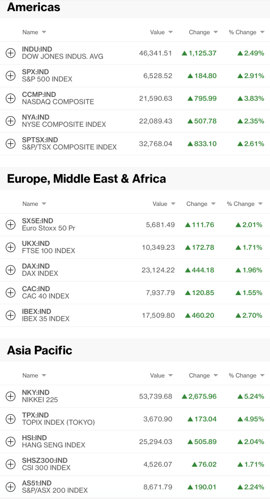 As March and Q1 ended, it appears that there have been some changes in opinions in the investment community.  At least that is what I glean from the following Bloomberg screenshot of major global equity markets including yesterday’s US session and the overnight activity.