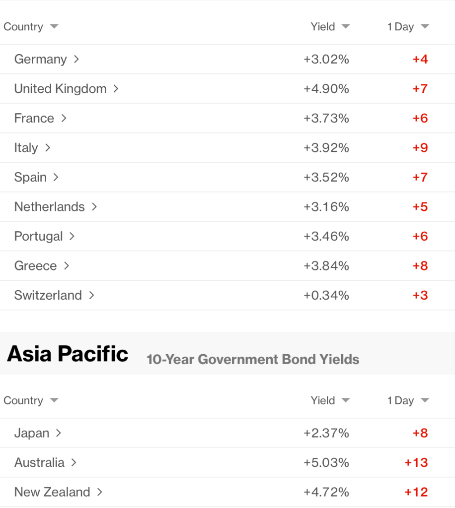In the bond market, too, price action from the beginning of the week has reversed. Treasury yields have rebounded 5bps this morning, although remain well below the recent peak of late last week, and you can see how Europe and Asia behaved in the Bloomberg screen shot below.