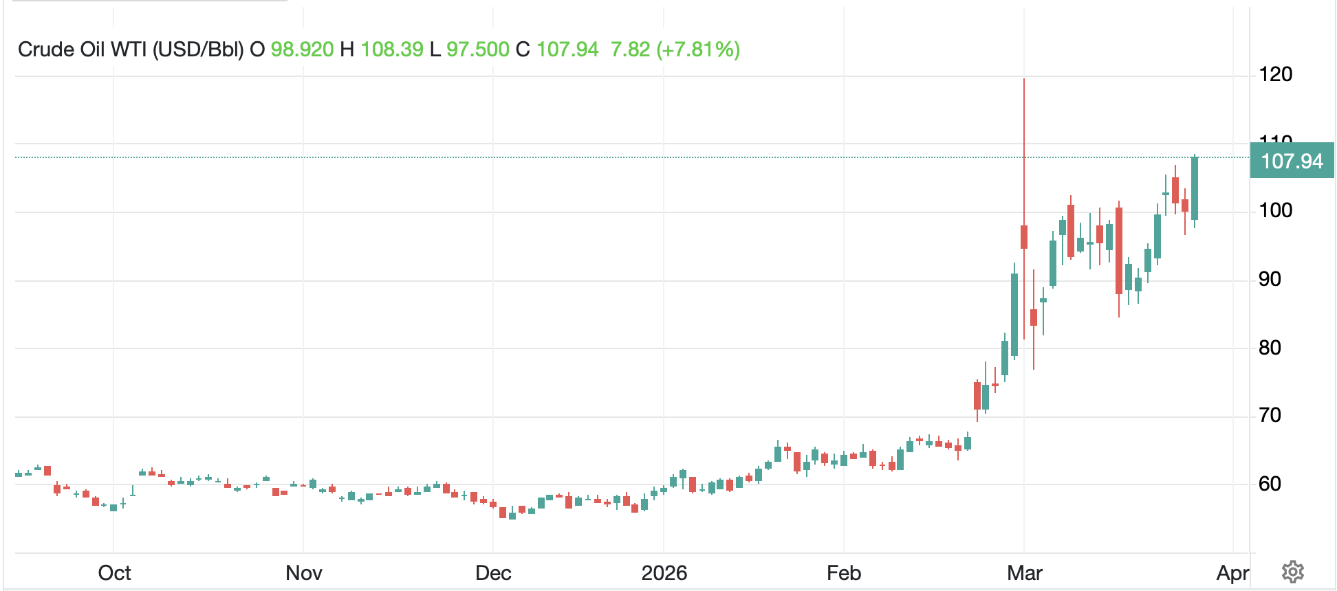 Turning to commodities, oil (+7.8%) has rebounded sharply as you can see in the below chart, actually trading now at its highest level since the initial spike move the evening the attacks began.