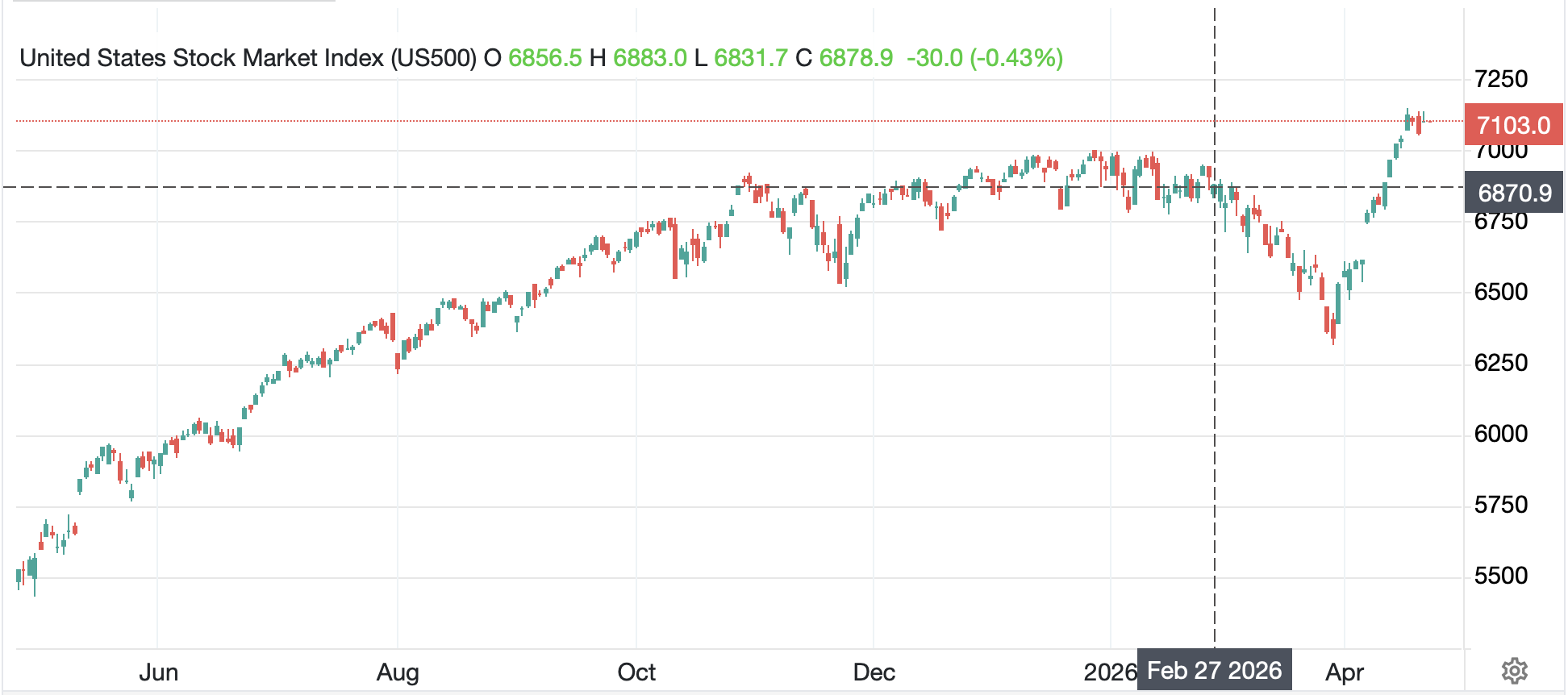 And you know what helps confirm that the US economy is ticking over nicely? The continued equity market rally. Since the war began, after the initial fears that rising oil prices were going to collapse the global economy, the market has completely reversed course as you can see in the below. Chart.
