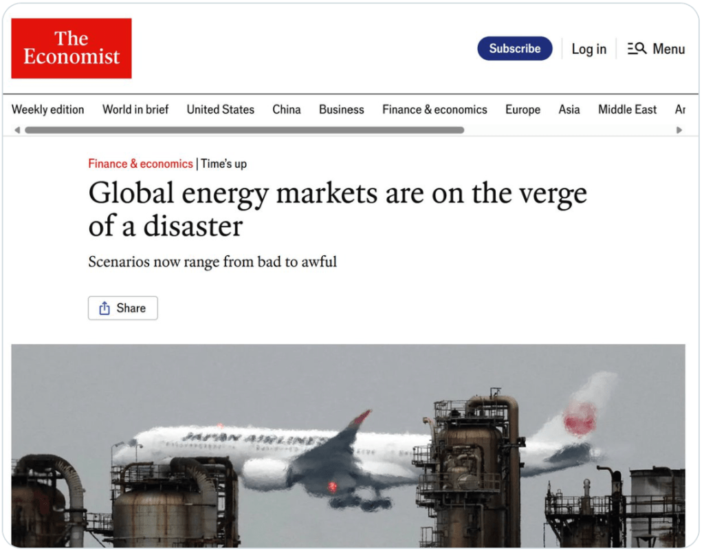 From the nadir on March 30th, the S&P 500 has rebounded 12.5% to new all-time highs. Earnings data that has been released for Q1 thus far has shown significant growth, upwards of 18% profit growth, again not a sign of a struggling economy. And perhaps the key feature of my argument is the following cover of The Economist magazine, which seems to have an almost perfect track record in terms of its cover articles, it is wrong nearly 100% of the time.