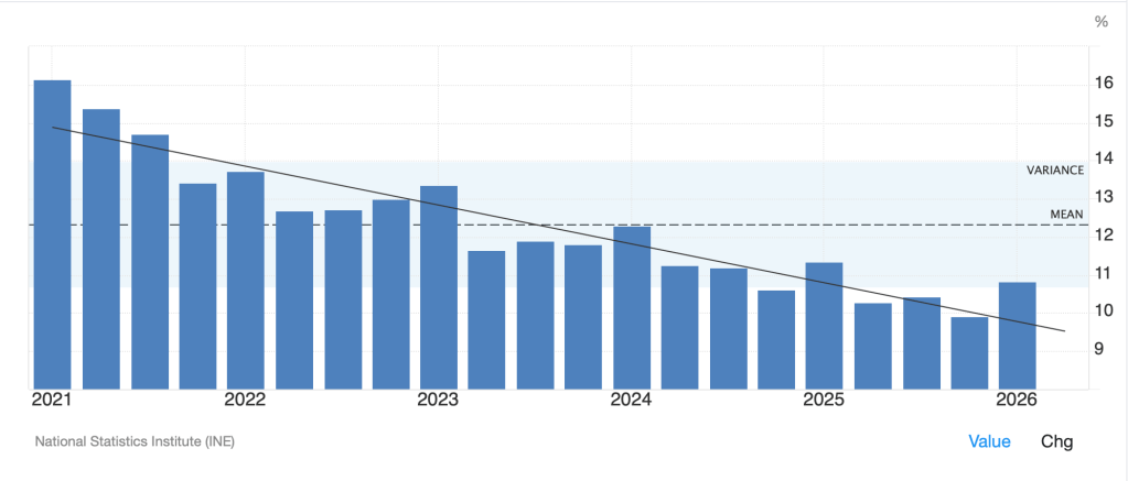 In the equity space, yesterday’s US performance was uninspiring, but we saw more weakness (Tokyo -1.0%, HK -1.0%, China -0.3%, India -0.5%, Australia -0.6%) than strength (Korea +0.4%, Malaysia +0.7%) across Asia. However, there are no new stories to drive things here with the Iran war and energy prices the only topic of note. In Europe, markets are feeling better this morning with gains across the board led by Spain (+1.0%) and the UK (+0.6%). I must admit I am confused by the Spanish performance as the only data point of note released this morning was Spanish Unemployment which jumped to 10.83% (such precision), far above last month’s 9.93% and a full point above economists’ forecasts. But I guess if you look at the longer-term history of Spanish Unemployment, this is still far better than it has been in the past and the trend remains intact.