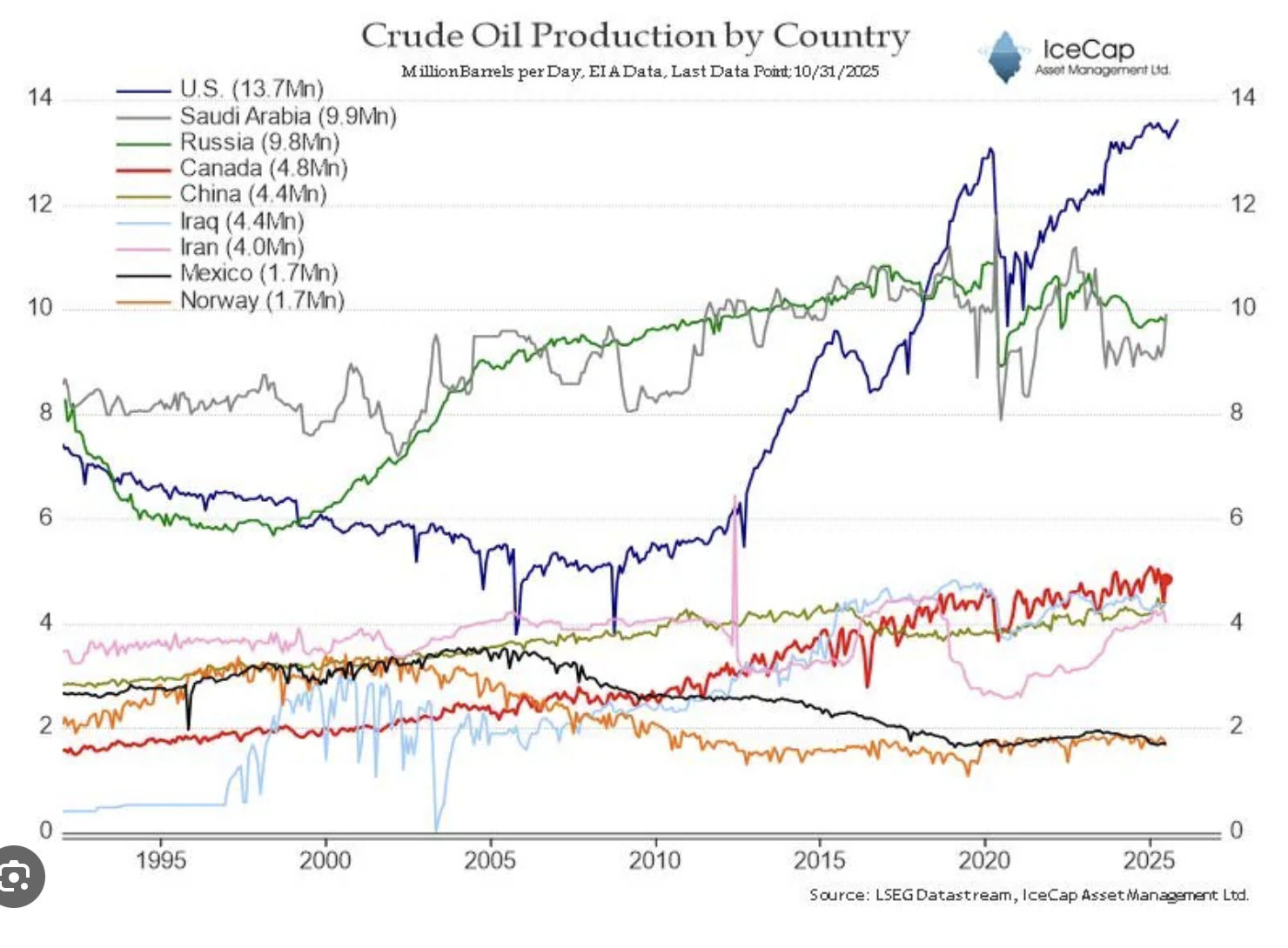 But the fracking boom in the US in the 2010’s laid the groundwork for OPEC’s demise as suddenly, not only was there a major producer outside the group (there had always been a few like Norway and the UK), but there was a major producer that had power in its own right. Thus, the seeds were sown back in 2014 or so, as fracking in the US took off, for the end of this organization. And that’s where we stand today. The US is the largest producer of hydrocarbons in the world by a long shot these days, as not only do they dominate oil production, but, too, natural gas and associated liquids.