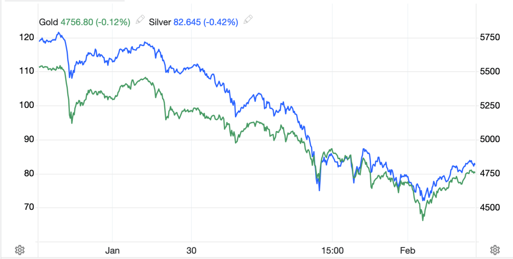 It beggar’s belief that this is entirely a reaction to the rumored naming of Kevin Warsh as the next Fed chair.  As I type early this morning, the prices of precious metals are already bouncing nicely off their lows.  I do not know what drove this move specifically, but I do not believe that the big picture story has changed.