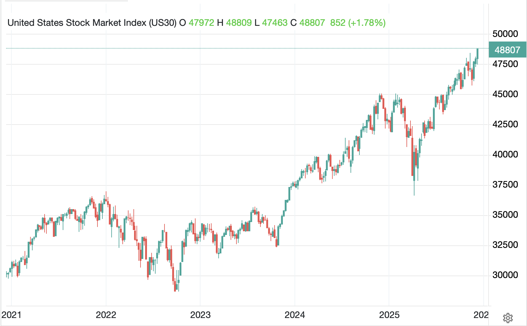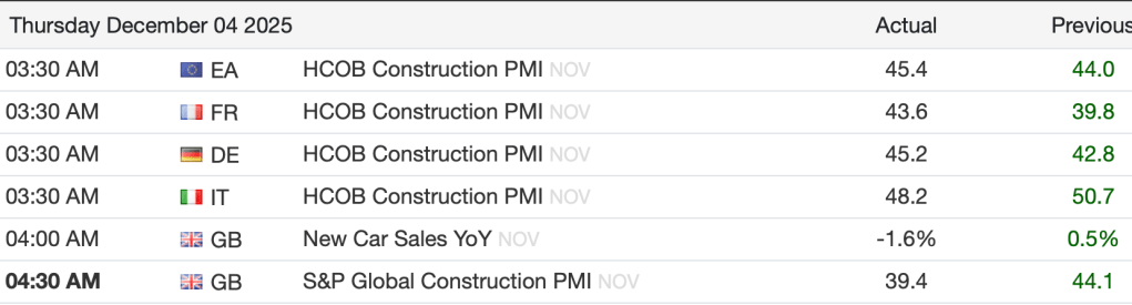 In the meantime, with risk in such demand, it is no surprise that bond yields are edging higher with Treasuries +2bps, after trading below 4.0% during yesterday’s session on a weak ADP weekly employment report (-13.5K) as well as PPI data that seemed less concerning.  European sovereign yields have all edged higher by 1bp this morning, again synchronous with risk on, and JGB yields also edged higher by 1bp after the government there explained they would be borrowing ¥11.5 trillion (~$73.5 billion) in extra debt to fund Takaichi-san’s supplementary budget.  The big outlier is Australia, where AGBs rose 10bps after CPI rose a hotter than expected 3.8% in October, not only putting paid any thoughts of a further rate cut but bringing rate hikes back into view.