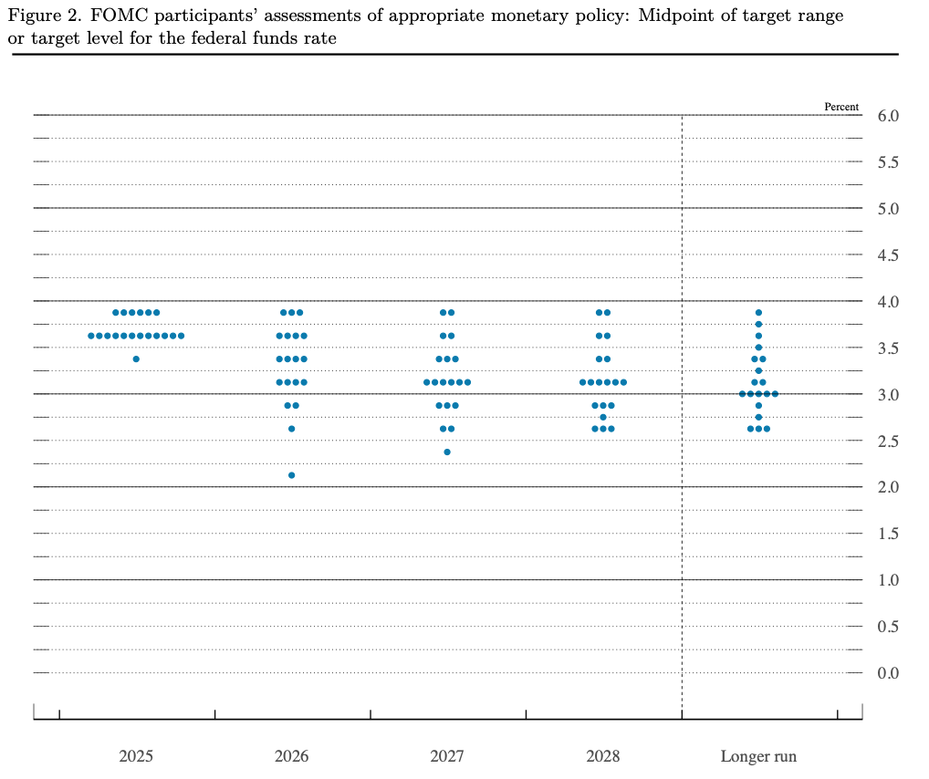 I think it is appropriate to start this morning’s discussion with the dot plot, which as I, and many others, expected showed virtually no consensus as to what the future holds with respect to Federal Reserve monetary policy.  For 2026, the range of estimates by the 19 FOMC members is 175 basis points, the widest range I have ever seen.  Three members see a 25bp hike in 2026 and one member (likely Governor Miran) sees 150bps of cuts.  They can’t all be right!  But even if we look out to the longer run, the range of estimates is 125bps wide.