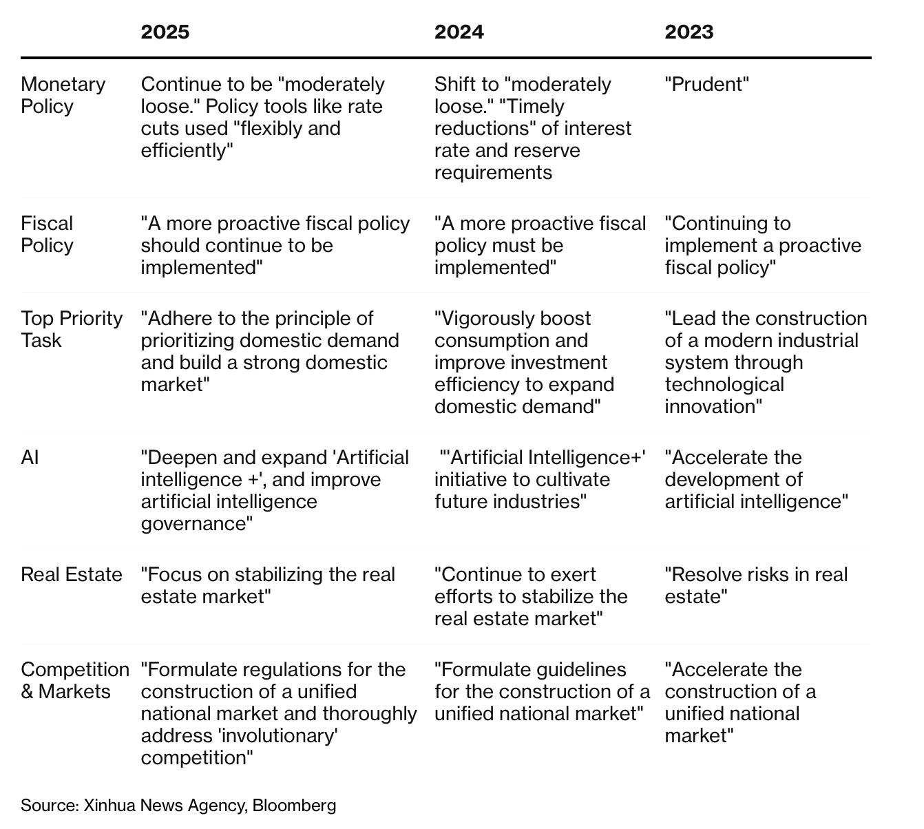 The other noteworthy story this morning is the outcome from China’s Central Economic Work Conference (CEWC).  I have described several times that the President Xi’s government claims they are keen to help support domestic consumption and the housing market despite neither of those things having occurred during the past several years.  Well, Bloomberg was nice enough to create a table highlighting the CEWC’s statements this year and compare them to the past two years.  I have attached it below.