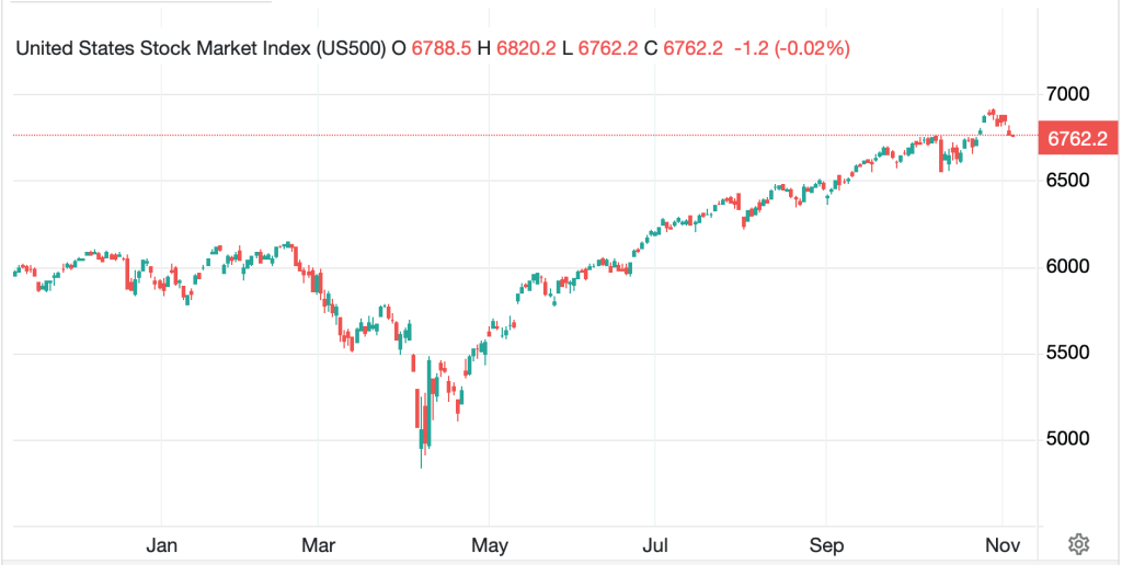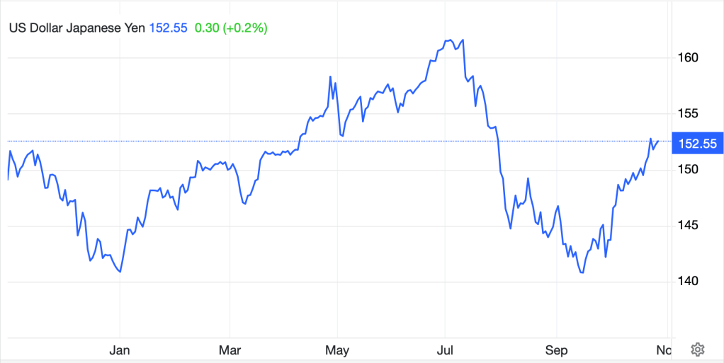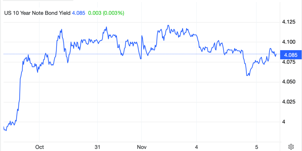 For all the election hype, I don’t perceive that things have changed very much at all. Perhaps the Supreme Court hearings on the legality of President Trump’s tariffs are the real story today, but regardless of the hearings, no verdict will be rendered for many weeks. Which leaves us with a world in which tech is still dominant in equity markets and the US is still dominant in tech. With the perception of the Fed being somewhat more hawkish, I don’t see a good reason to sell dollars.