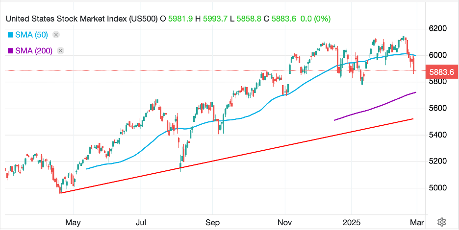 It all came undone yesterday around 10:45 in the morning for no obvious reason. There was no data released then to drive trader reaction nor any commentary of note. In fact, most of the punditry was still reveling in the higher Nvidia earnings and planning which Birkin bag they were going to buy for their girlfriends wives. But as you can see from the NASDAQ chart below, in the ensuing two hours, the index fell by 4% and then slipped another 1% or so from there into the close, the level that is still trading at 6:30 this morning
