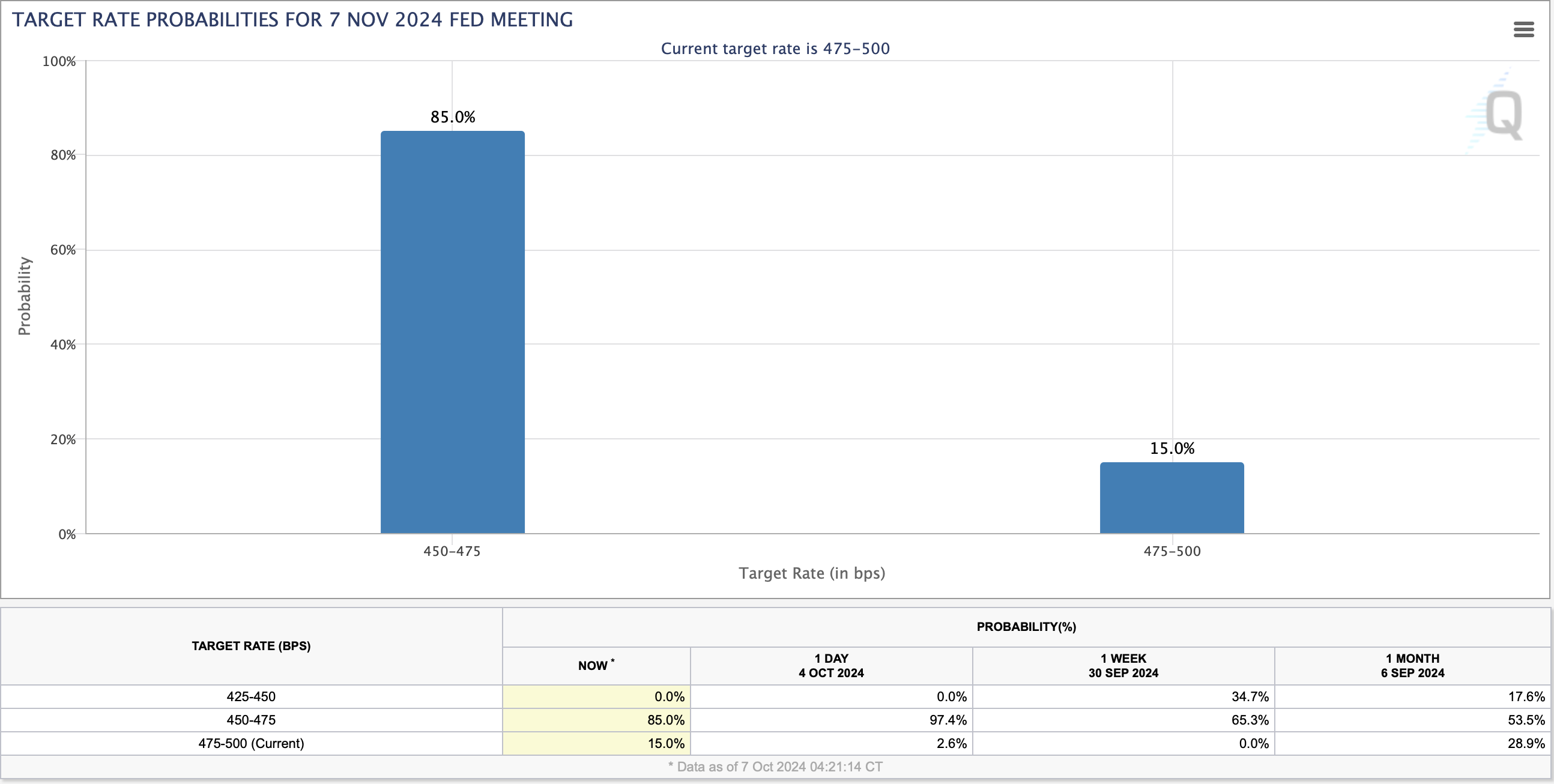 Ok, let’s tour the markets we have not yet touched upon. While Chinese markets remain closed (the holiday ended today and markets there reopen tomorrow), the Nikkei (+1.8%) continues to rebound alongside USDJPY and amid stories that new PM Ishiba has dramatically moderated his hawkish views ahead of the snap election called for the end of the month. The Hang Seng (+1.6%) also had a strong session, with rumors of still more Chinese stimulus to be announced tonight. The combination of positive US growth news and the Chinese stimulus news helped virtually every market in Asia save India (-0.8%), which has been singing a different tune consistently. In Europe, it should be no surprise the DAX (-0.3%) is softer, although there are some gainers on the continent (Spain +0.4%, Hungary (+0.4%) and other laggards (Norway -0.7%, Netherlands (-0.3%). Overall, it is hard to get excited about the European scene this morning. Alas, US futures are pointing lower this morning, down -0.5% at this hour (6:30).
