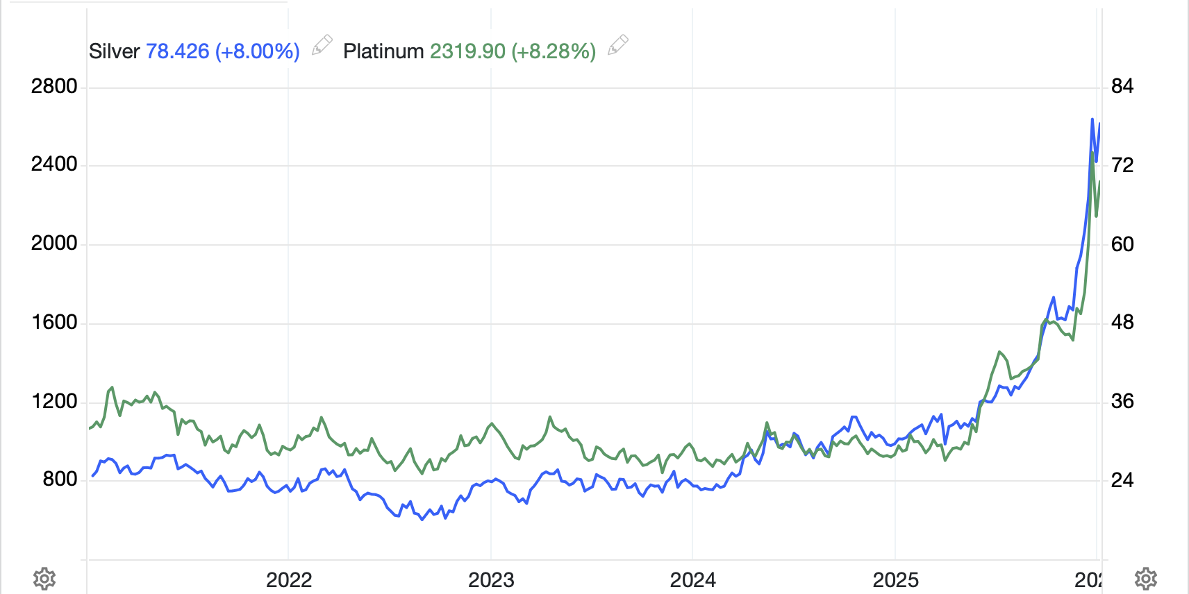 My take is that investors are still trying to figure out the implications of the fact that old relationships like the dollar falling when metals rise, or metals falling when real interest rates rise, are broken and what that implies for the future. The reality is that other than gold, which is the calmest of them all, these metals are indicating actual shortages for users. Consider that, according to Grok, the typical catalytic converter uses between 0.1 and 0.25 troy ounces of platinum, so at today’s price, between $230 and $575. Given the average price of a new car is ~$50K, paying up for platinum is not going to change the equation that much, certainly relative to not having the platinum and therefore not being able to complete and sell the vehicle. I suspect that metals, while likely to be volatile in their price action, have much further to run higher.