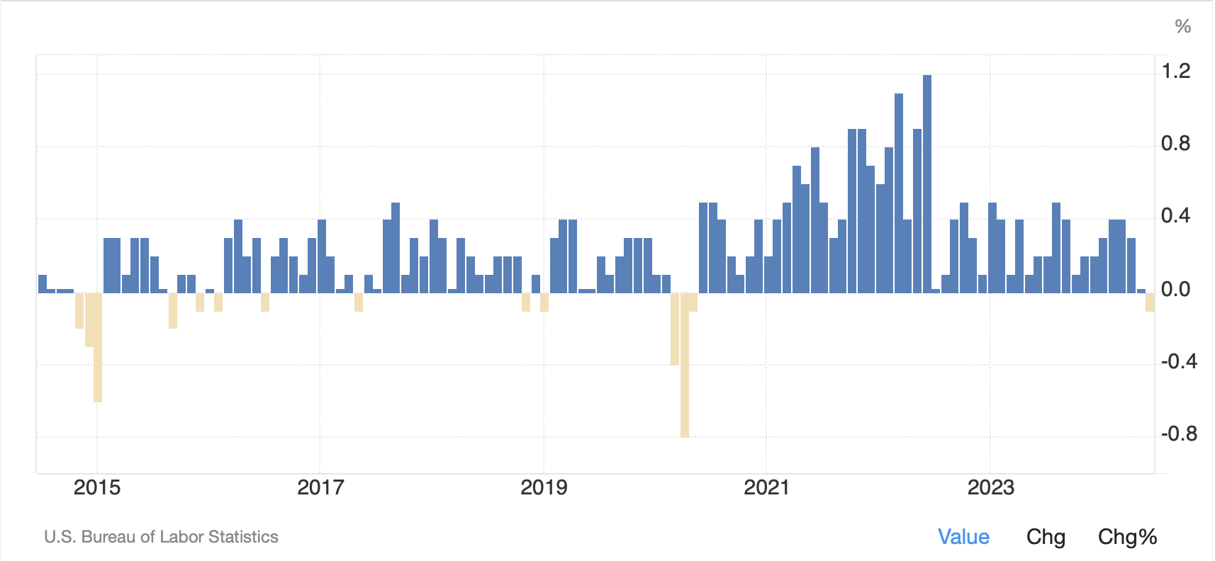 In Europe, red is today’s color, led by the CAC (-1.0%) although we are seeing losses across the board. Eurozone data showed declining Consumer Confidence, Economic Sentiment and Industrial Sentiment all while inflation expectations remain stubbornly high. That stagflationary hint is typically not an equity market benefit so these declines should be expected. The story on the continent is not a positive one and I maintain that the ECB is going to have to cut rates more aggressively than their inflation mandate would suggest. That might support equities a bit, but it will be hell on the euro! Finally, US futures are a touch softer (-0.2%) at this hour (7:05) although they were higher most of the overnight session before this.