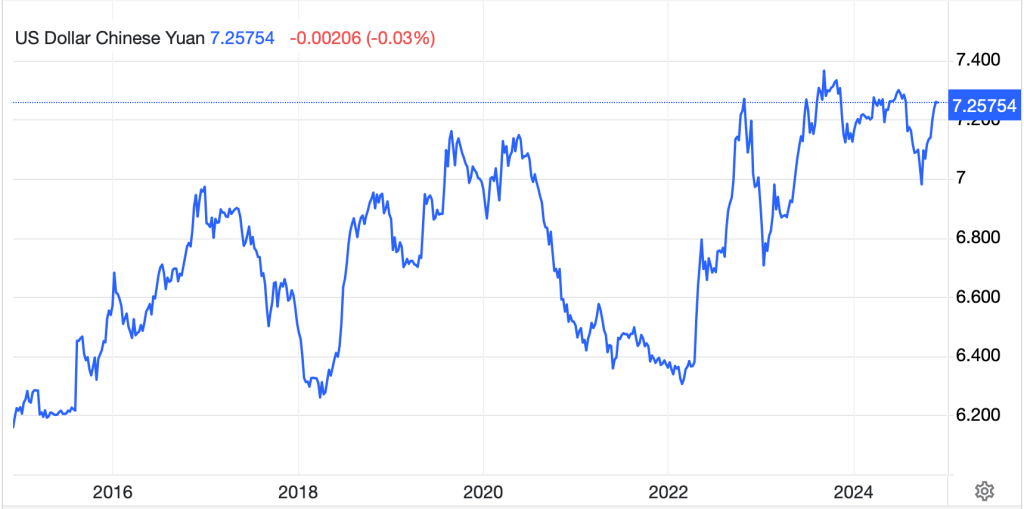 Ok, a really quick tour. Yesterday was the third consecutive down day in the US, although all told, the decline has been less than -2%, so hardly devastating. Asia mostly fell overnight as concerns over both tariffs and a Fed less likely to cut rates weighed on equities there with Japan (-0.9%), China (-1.0%) and HK (-1.35%) all under pressure. The story was worse for other regional bourses with Korea (-2.5%), India (-0.9%) and Taiwan (-1.7%) indicative of the price action.