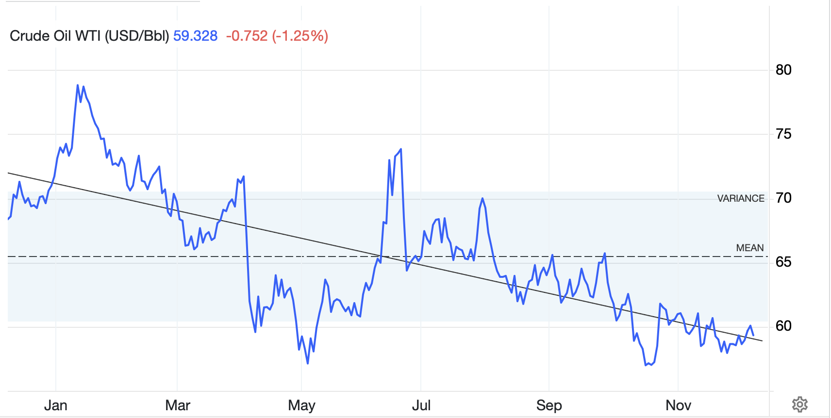 Silver managed to drag gold (+1.1% today, +3.0% this week, +65% this year) and platinum (+3.6% today, +7.2% this week, +98% this year) along for the ride and I expect this will continue across the board. Meanwhile oil (0.0%) is unchanged this morning but has fallen -4.0% this week. The news that the US boarded a Venezuelan oil tanker and took control in an effort to pressure Maduro didn’t seem to concern anyone in the market. This trend remains clear.