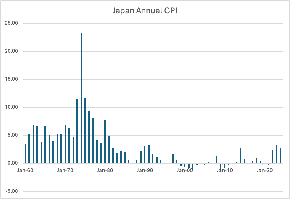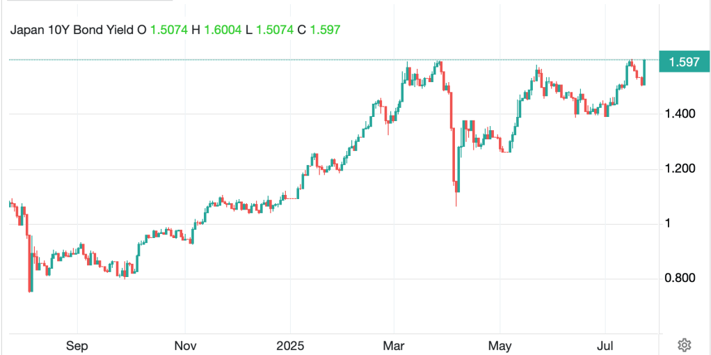 The market is pricing just a 3% probability of a cut tomorrow, but a 65% probability of a cut in September and then another cut in December. It strikes me that we will need to see a major reversal in the economic situation in the US, with Unemployment rising and growth rapidly declining in order to bring about a situation where there is a real case to be made for a cut. But we also know that politics plays an enormous role in this story, and while expectations are that we are going to see two dissents at tomorrow’s meeting, that will not change the outcome of no movement.