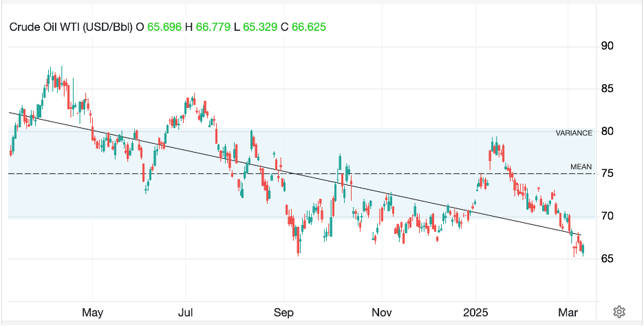 In the commodity market, oil (+0.9%) while higher this morning continues to hold its downtrend as per the below chart. With further Russia/Ukraine peace talks starting up in Saudi Arabia, the prospects of Russian oil coming back to the market seem to be growing.