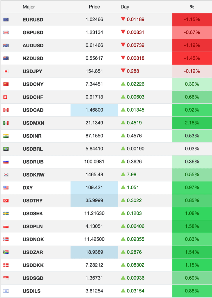 Too, the FX markets have also responded dramatically, with the dollar exploding higher vs. virtually all its counterpart currencies this morning as 1% gains are the norm.